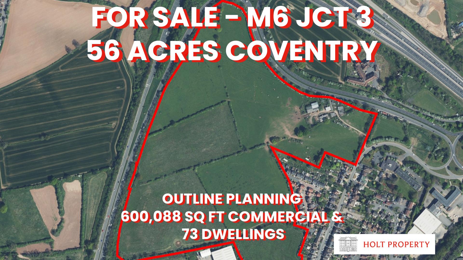 FOR SALE – M6 Jct 3 Prime 56 acre Development Opportunity - Commercial & Residential Site with Outline Planning Consent.